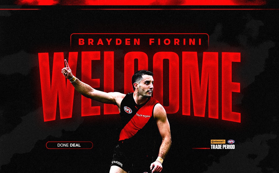 Essendon is thrilled to welcome Brayden Fiorini to the Club after finalising a trade with the Gold Coast SUNS on Tuesday afternoon.A crafty winger who’s also shown his capability as an inside midfielder, Fiorini established himself as a consistent performer on the Gold Coast over 10 seasons and 123 games, averaging 20 touches from 18 appearances this year.The 28-year-old winger officially nominated Essendon as his new home at the opening of the Continental Tyres Trade Period this week, with the Dons exchanging a future 2026 third round selection for his signature.Although Fiorini entered this off-season as an unrestricted free agent, the Dons opted to secure his services via trade, as to hold onto their compensation pick from Sam Draper’s departure.Selected with pick No. 20 in the 2015 National Draft, the former Greensborough talent is keen to return to Victoria to officially join the Bombers for 2026 and the years ahead.“I’m super excited to be joining the Bombers, and to join such a big Club with a rich history is really special to me,” Fiorini said.“Having been in the system for 10 years I feel I can bring leadership and experience to the young and exciting group, both on and off the field. I want to bring my high work rate, footy IQ and help support the Club’s direction.“I’m really looking forward to this new challenge, and it’s great to be moving closer to home and to be joining a Club that is hungry for success. I can’t wait to be a part of that.”Fiorini appeared in each of the SUNS’ first two finals in Club history this year, cementing his spot in the side once again through a blistering run of form in the second half of the campaign.His dominant 32-touch, one-goal effort against eventual premiers Brisbane in the round 20 QClash was a standout effort in a season that ranked among his best to date.Essendon’s General Manager – List and Recruiting Matt Rosa is excited to bring Fiorini aboard.“We are extremely excited to have Brayden, Molly and son William join the club. We see a clear role for Brayden on the wing, it's a role-specific target we were after leading into this period. Brayden has great leadership qualities, is a high-end character and has great footy IQ. There's no doubt he'll complement our midfield mix,” Rosa said.“He provides us with reliable, immediate impact on and off-field and is the calibre of character we want driving standards at the Essendon Football Club.”The Club is excited to welcome Brayden, Molly and their son William to the Bombers.